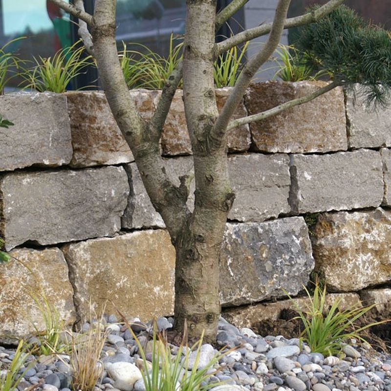 Mauersteine / Quadersteine aus Muschelkalk. Farbe blaugrau bis anthrazit, leicht gelblich. Vordere Kante maschinell gespalten, ohne Bohrlöcher. Steinhöhe 30 - 40 cm, und 30 - 40 cm Steintiefe, für Trockenmauern bis ca. 200 cm Gesamthöhe. Muschelkalk wird in Bayern abgebaut und verarbeitet. Muschelkalk ist ein blaugraues bis anthrazitfarbenes Hartgestein mit leichten gelblichen Farbeinschlüssen. Muschelkalk kommt im Steinbruch in verschiedenen Lagerbänken vor. Aus Muschelkalkgestein erhalten Sie bei uns maschinell gespaltene Mauersteine für Trockenmauern in verschiedenen Steinhöhen sowie Blockstufen, Boden- und Terrassenplatten. Muschelkalk ist ein hartes Gestein, das sich sehr gut maschinell spalten lässt. Er ist ein preiswertes Baumaterial für Trockenmauern. Muschelkalk ist witterungsbeständig, frostsicher und rostfrei. Der Preis zu diesem Artikel ist gültig ab Steinbruch Bayern bei genannter Mindestbestellmenge. Sollten Sie weniger benötigen, klicken Sie auf den blauen Botton Preisanfrage. Sie bekommen schnellstens ein kostenloses Angebot. Wir beraten Sie gerne auch telefonisch. Rufen Sie uns an +49 7761 93790460, aus der Schweiz +41 32 5132833.