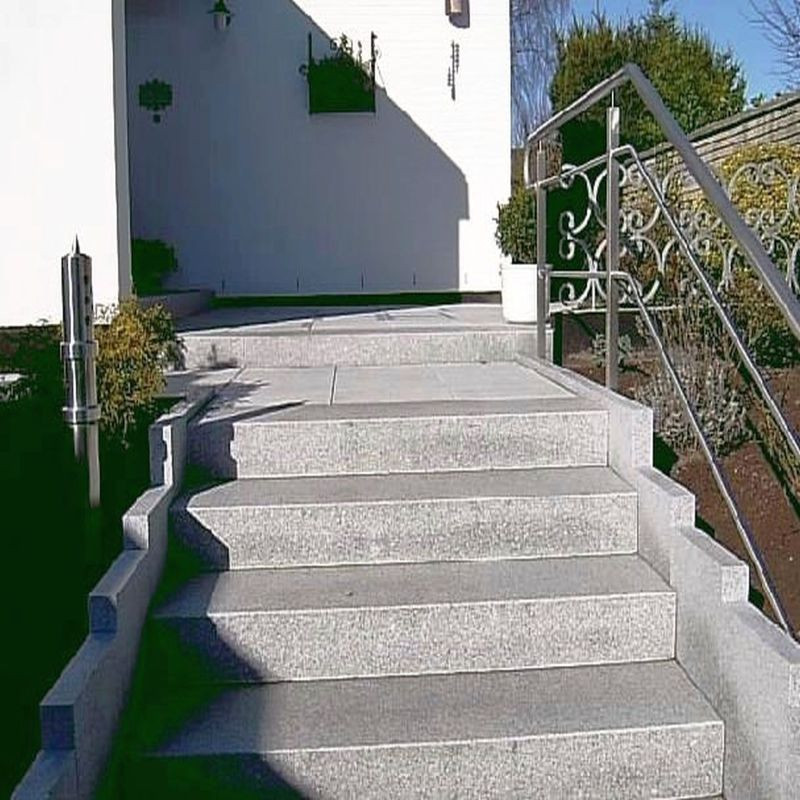 Blockstufen aus Granit Griys, hellgrau, im Format 18 cm hoch und mit 40 cm Auftritt. Alle 6 Seiten geflammt und alle Kanten ringsum mit einer technischen Fase. Lieferbare Längen bis 350* cm. Individuelle Längen sind auf Anfrage möglich. Der Granit Griys ist ein hellgrauer, mittelkörniger bis grobkörniger Granit aus Schlesien. Dieser Granit eignet sich besonders für massive Natursteinarbeiten im Straßen-, Garten- und Landschaftsbau. Granit Griys ist frostbeständig, rost- und säurebeständig. Granit Griys wird hauptsächlich mit geflammter Oberfläche hergestellt. Gestockte oder sandgestrahlte Oberflächenbearbeitungen sind bei diesem Granit möglich. Granit Griys mit polierter Oberfläche wird auch im Innenbereich verwendet und ist dort ein preisgünstiges Baumaterial. Granit Griys ist ein Natursteinprodukt und unterliegt natürlichen Farb- und Kornschwankungen. Der Preis zu diesem Artikel ist gültig ab Werk Schlesien bei genannter Mindestbestellmenge. Sollten Sie weniger benötigen, klicken Sie auf den blauen Botton Preisanfrage. Sie bekommen schnellstens ein kostenloses Angebot. Wir beraten Sie gerne auch telefonisch. Rufen Sie uns an +49 7761 93790460, aus der Schweiz +41 32 5132833.